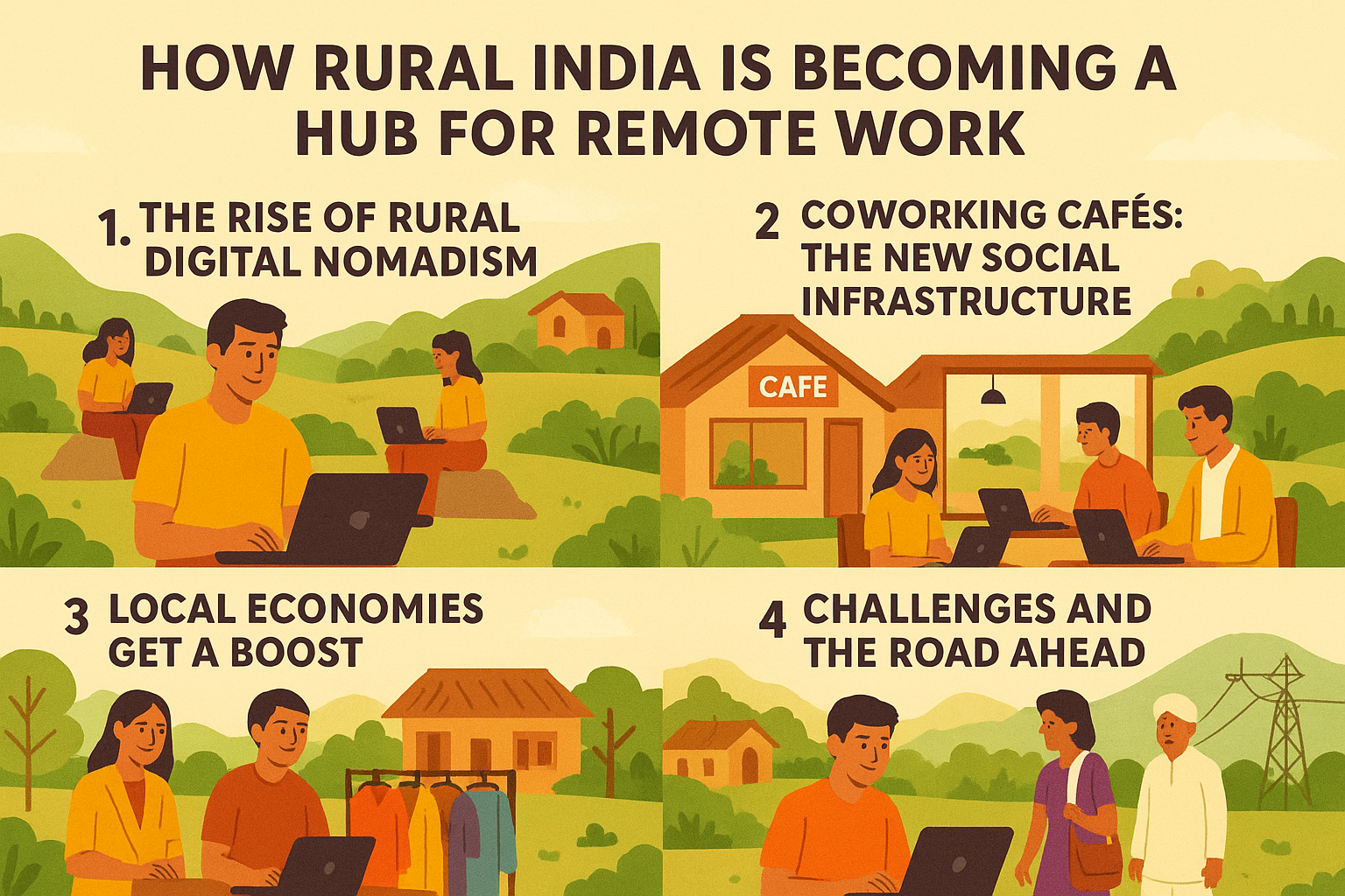 Once recognized solely for being farms and a slow lifestyle, the rural parts of India are emerging as an unexpected location for remote work. With quicker internet capability, affordable housing, and a desire for quiet space beyond the din of city life, workers are bringing their laptops into small-town coffee shops or coworking spaces. From Himachal’s hill towns to Tamil Nadu’s coast, the rural landscape is alive with digital energy, marking a silent revolution that, in effect, says work does not depend on a building that touches the sky, just good Wi-Fi and fresh air.