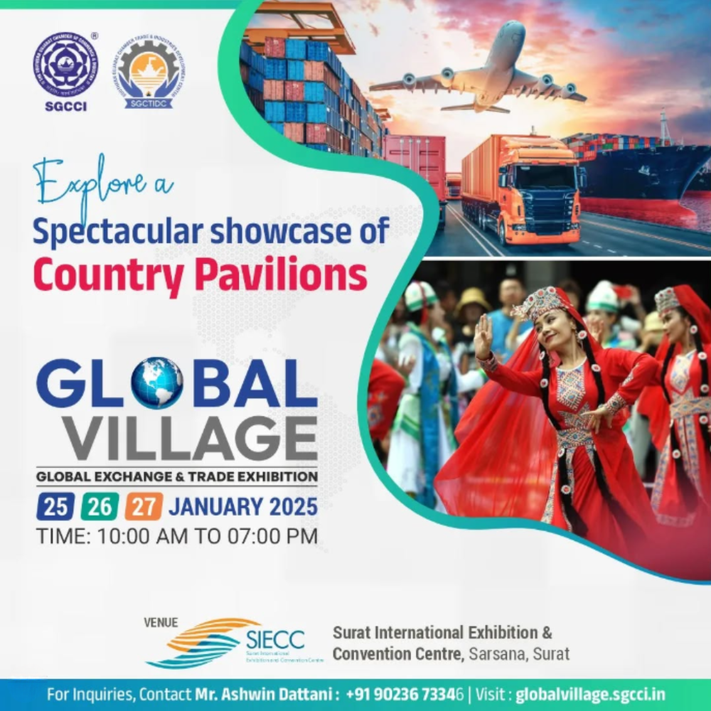 Surat, one of India’s fastest-growing business and cultural hubs, is all set to host a landmark international exhibition—SGCCI Global Village 2026 – Food & Beverages Expo (2nd Edition). Organized by the Southern Gujarat Chamber of Commerce and Industry (SGCCI), this mega event promises to be a vibrant convergence of food, culture, innovation, and global business opportunities. Scheduled from 24th to 26th January 2026, the exhibition will run daily from 10:00 AM to 7:00 PM at the prestigious Surat International Exhibition and Convention Centre (SECC).